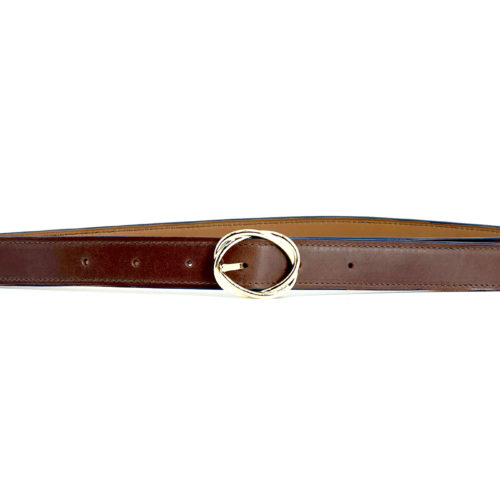 Ceinture Edith / Doré & cuir Acajou 25mm