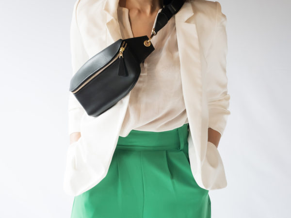 Fermeture ZIP “RIRI” 30cm. Sangle largeur 4cm, réglable et amovible, en sangle coton et cuir. Intérieur doublé cuir d’agneau. Petite poche plate à l’intérieur.
