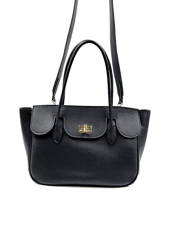 Fermeture rabat tourniquet doré. Double poignées et bandoulière amovible largeur 4cm bicolore orange/cognac. Intérieur doublé cuir d’agneau. Une poche intérieur ZIP 25 cm. Fond renforcé .Clous de fond doré.Logo « Julie Erlich Atelier Français » marqué à chaud doré à l’intérieur.